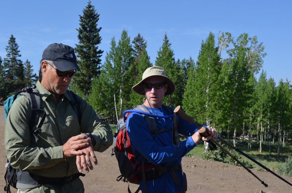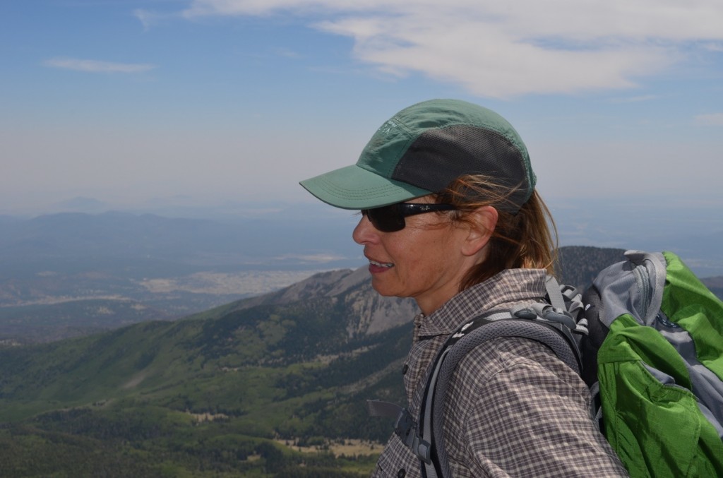 Cindy and Larry rented a house out on Hidden Hollow Road, in between downtown Flagstaff and the trailhead, and we all had a lovely evening there Friday night. At around 7:15 Saturday our dogsitter Jean-Paul came to the door. He’s the boyfriend of a former student of mine who is now attending graduate school at Northern Arizona. This brave man stayed with our 5 dogs for almost 8 hours while we drove to the mountain, hiked up & down, then drove home. Jean-Paul gets the true award for stamina today.