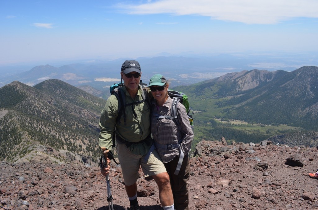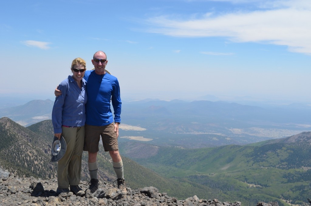 At this time next week we will be arriving in Amsterdam, and then 2 days after that we’ll be arriving in Arusha, Tanzania. Our fearless guide Kapanya Kitaba has sent us several emails asking us when we are going to stop exercising. He says we need to conserve our energy for the hike. But we have had this Humphrey’s summit planned for some time as a celebration of John’s 45th birthday, so John, Cindy, Larry and I all went up and climbed the highest peak in Arizona. Sorry Kapanya! From now on you are the boss.