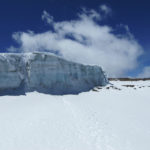 We took a bajillion pictures and lots of video, and Nicksoni asked if we wanted to see the Furtwangler glacier. Part of our desire to climb Kili was to be able to see the “Snows” of Kilimanjaro, including the glacier, before it disappears. Some experts believe it will be gone in 3 years. We walked to its base as Nicksoni told us about the shrinking of the glacier that he has witnessed in the years he had been climbing.