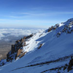 So here on Day 6 of the hike, on the Western Breach, scrambling up, eyes towards the rock, I suddenly saw sun on the cliff face to our right. I turned around to see what kind of view I really had on Kilimanjaro. I thought of Amy, and my heart soared. Not only could I see the new light on the copper rock and white snow, and on frozen waterfalls and glaciers, but I could also see the shadow of the mountain on the clouds below us. I never imagined such a beautiful sight. I started crying a little bit, which is inconvenient when it’s cold. But I truly felt like the luckiest girl in the world.