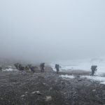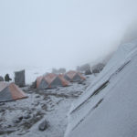 We got our 6 am wake-up call and I was ready to go. I was a bit surprised that it had snowed overnight and that we were in the clouds. I took some video for you. I’m a bit short of breath. I don’t really know how cold it got. Someone said 10 degrees, someone said 10 below. I slept in all my clothes and still shivered all night.