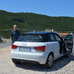 We arrived at the airport and had a short wait in line, then walked out to pick up the vehicle. Oh my gosh. What an adorable, clean, brand new, 4-door Audi A1. Color me surprised. The only small problem was that the hatch was just a touch too tiny for our two 22″ rollers and small back packs. We had hoped to be able to put everything away out of sight. We threw our backpacks into the back seat instead. We got in, set the GPS to the ferry dock in Ancona, and hit the road.
