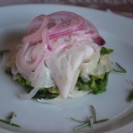 - Fish fillet with warm salad of beans and fennel and caramelized onions