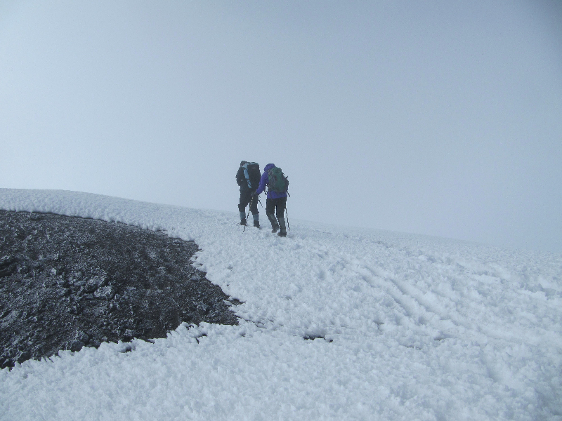Trish and Nicksoni crest the rim and walk towards the summit.