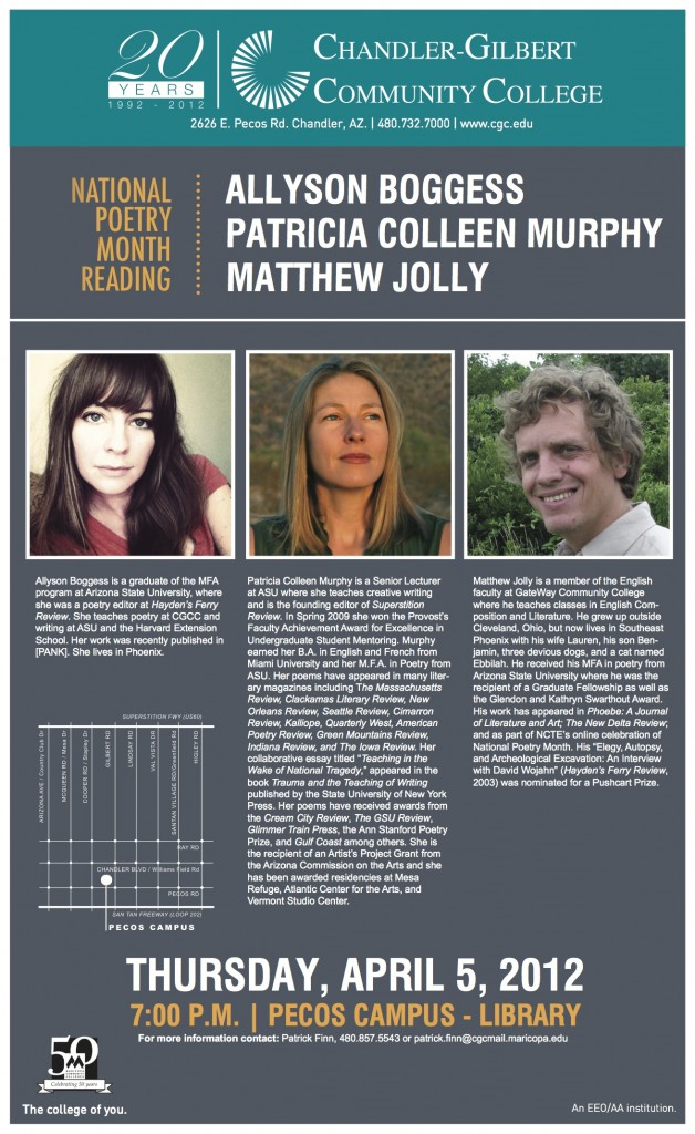 Poetry Reading Thursday April 5 at 7 pm