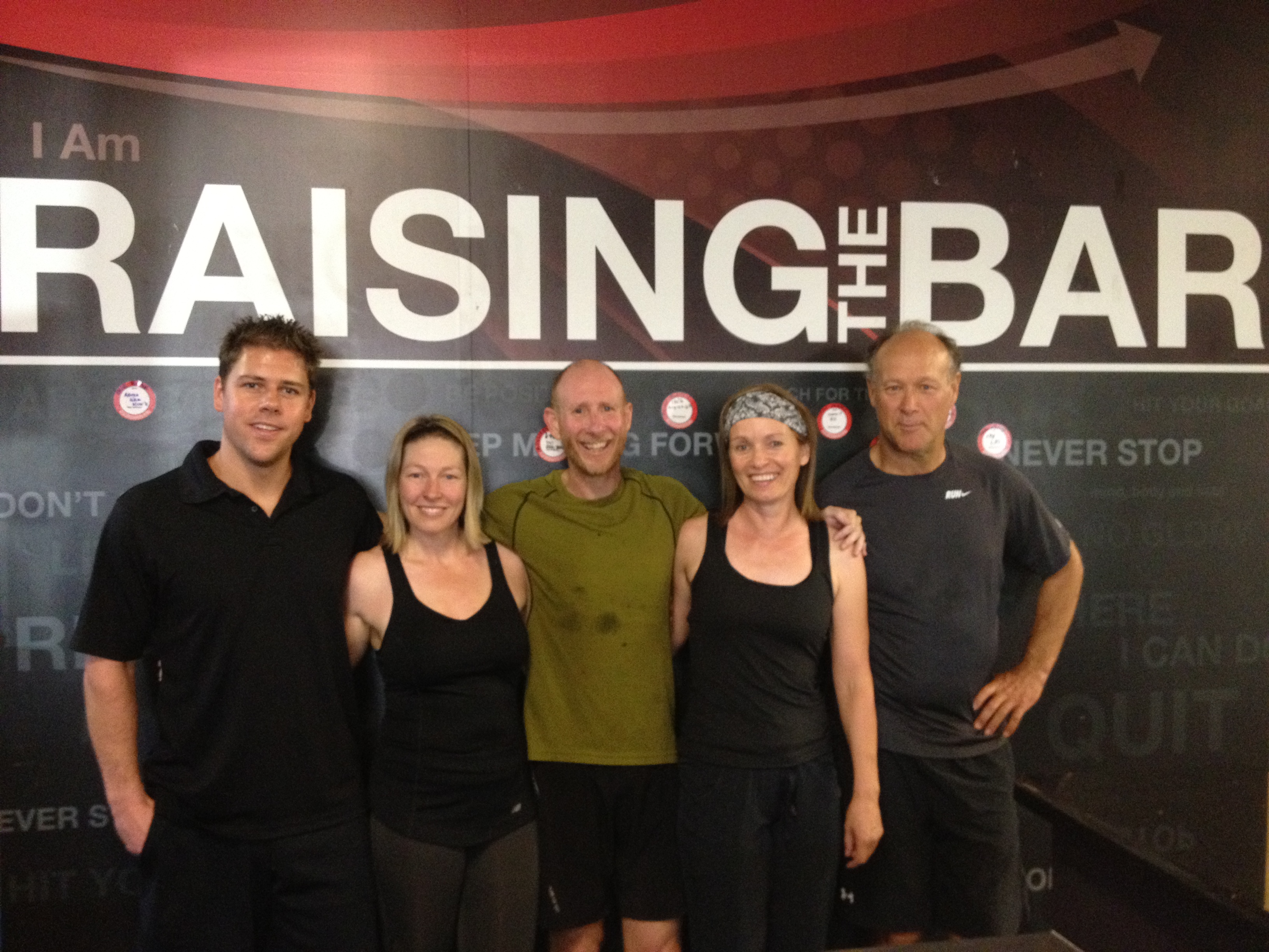 Cindy started going to Ryan’s small group training classes, and soon Larry started joining her. Here’s a pic of the Kili crew with our trusted torturer Ryan. Thanks for Raising the Bar on our Kili training, Ryan. We’ll raise a toast to you from the summit.