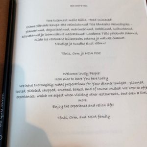 We have tried many Michelin starred restaurants, so we were very thrilled to be able to try NOA Chef’s Hall. We had done a lot of research on the place, and truly enjoyed this YouTube video about chef Orm Oja. We sat at the Chef’s Table so we could see Orm and his team work their magic. We had such delicious courses and really enjoyed the service too. At sunset, all the restaurant patrons went out to the lawn to watch the sun set over the water.
