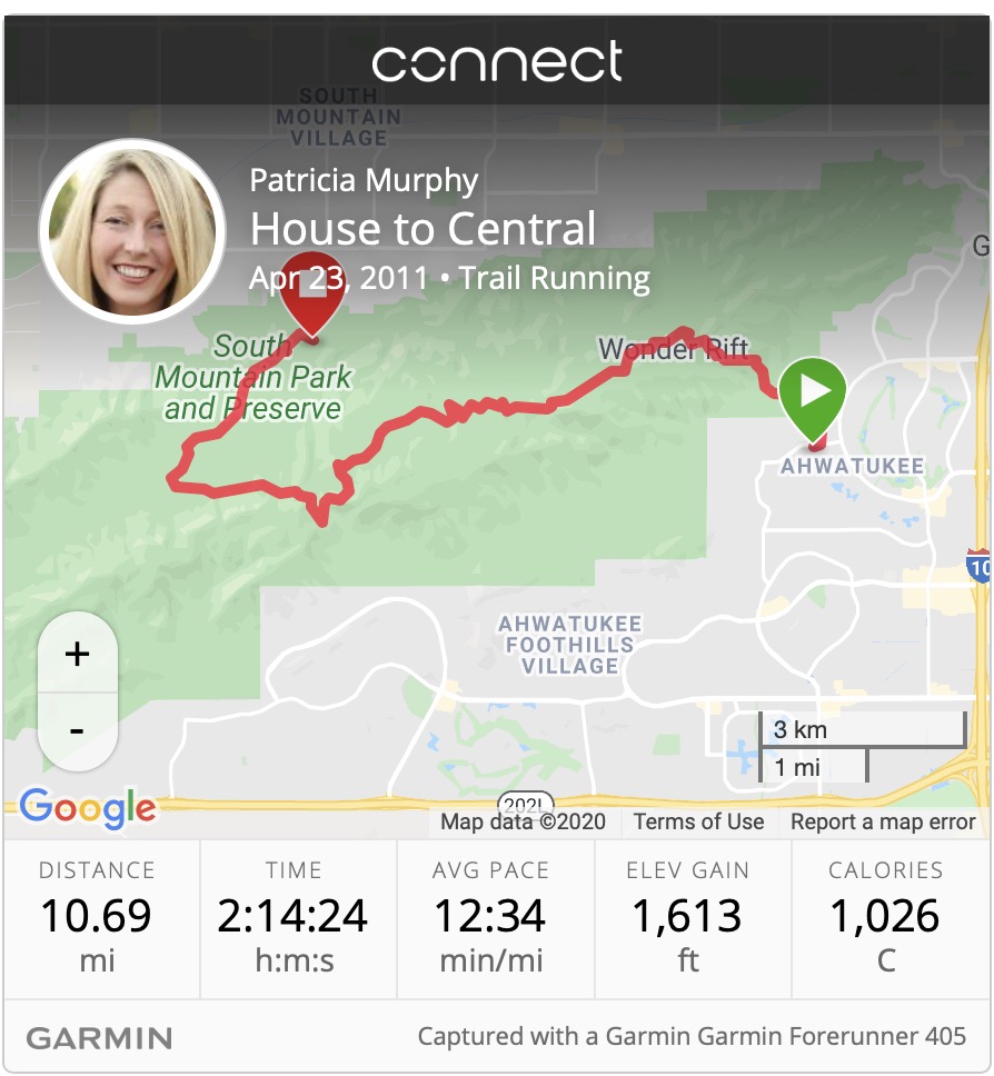 Right. I ran from my house to the top of South Mountain, through Hidden Valley to the Buena Vista Trailhead, down Summit Drive to San Juan Road to Central Avenue. Because, well, that’s relaxing #sarcasm.